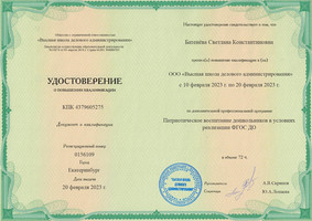 Квалификация: "Преподаватель дошкольной педагогики и психологии"